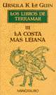 Decidido a descubrir el mal que está causando el desequilibrio y amenazando a Terramar, Ged el Archimago se hace a la mar acompañado por el joven Arren y llega eventualmente a «la costa más lejana<, la isla de Selidor, donde alguien ha abierto la puerta que lleva de la vida a la muerte. Sólo atravesando el reino de los muertos -descubre Arren-, escalando las Montañas del Dolor, encontrará el Equilibrio, ayudará a restaurarlo, y será capaz de gobernar las vidas de otros hombres.
